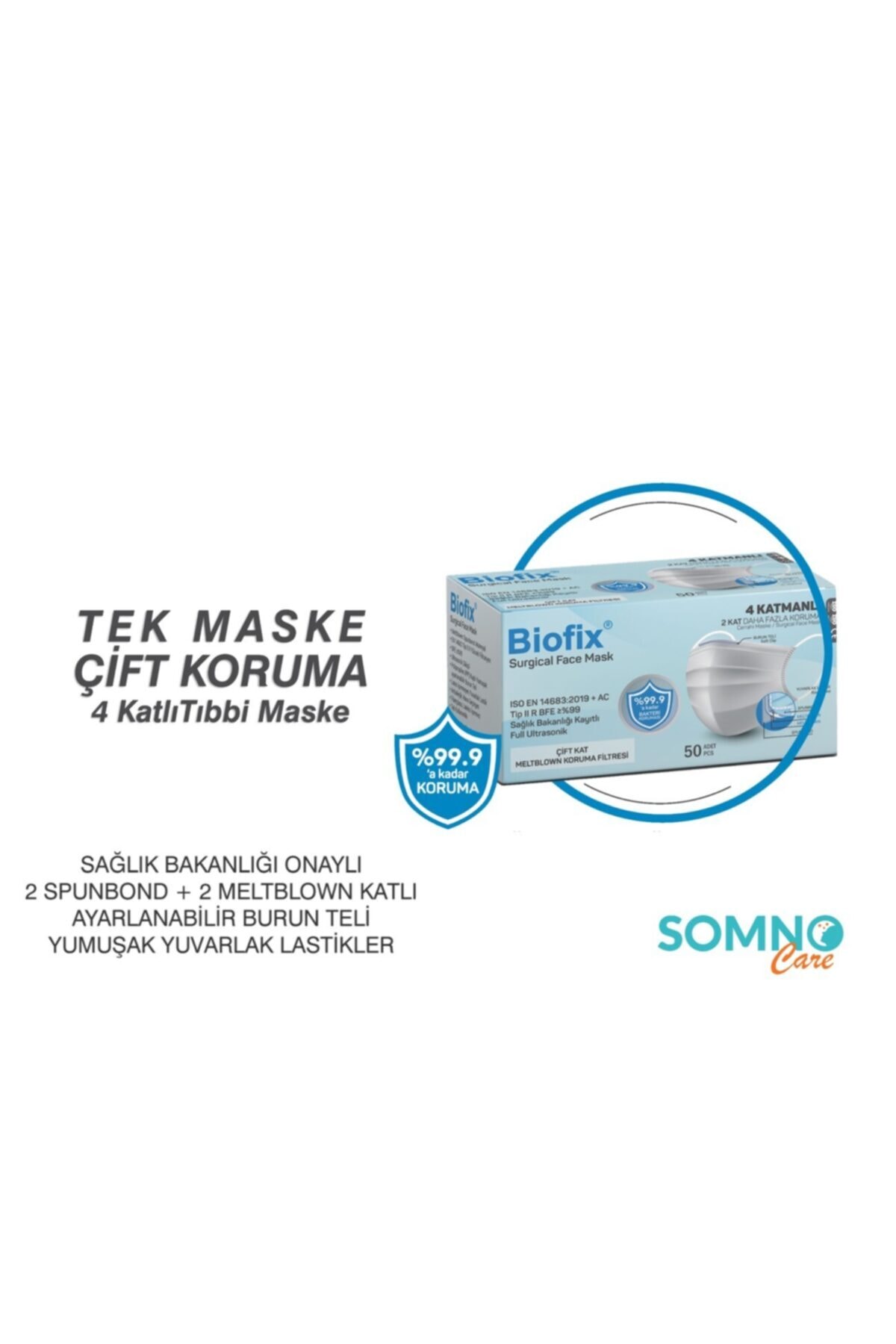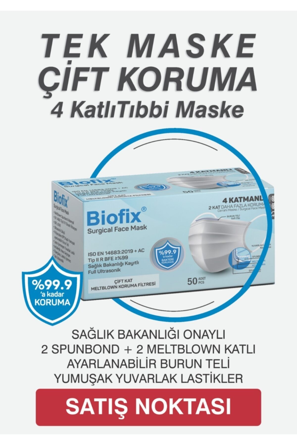 Biofix Meltblown 4 Katmanlı Telli Cerrahi Maske 2 Kat Daha Fazla Koruma (150 Adet) 3 Paket 50’Li