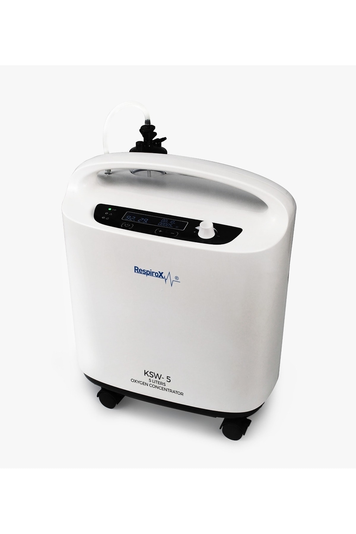 Respirox KSW-5 Nebülizatörlü Oksijen Konsantratörü 5lt 17kg ağırlığı ile diğer konsantratörlere göre daha hafiftir. ; Dijital Ekran Panelinde ayarlanabilen net oksijen ; Verdiği oksijen miktarını gösteren Oksijen Konsantratörü ; Yüksek Doğruluk Oranıyla Dijital Ayarlanabilir Flowmetre ; Desibel : <48dB ; Dijital Ayarlanabilir Otomatik Saat Ayarlı Kapanma ; Akış hızı: 5L/min ; O2 konsantrasyonu (V/V): 93%±3% ; Boyut: 410×265 ×530mm ; Güç tüketimi: ?450VA ; Oksijen konsantratör göstergesi için geçerli koşullar: ? Sıcaklık: 5- 40°C ? Bağıl nem: ?%80 ? Barometrik basınç: 86kPa – 106kPa;