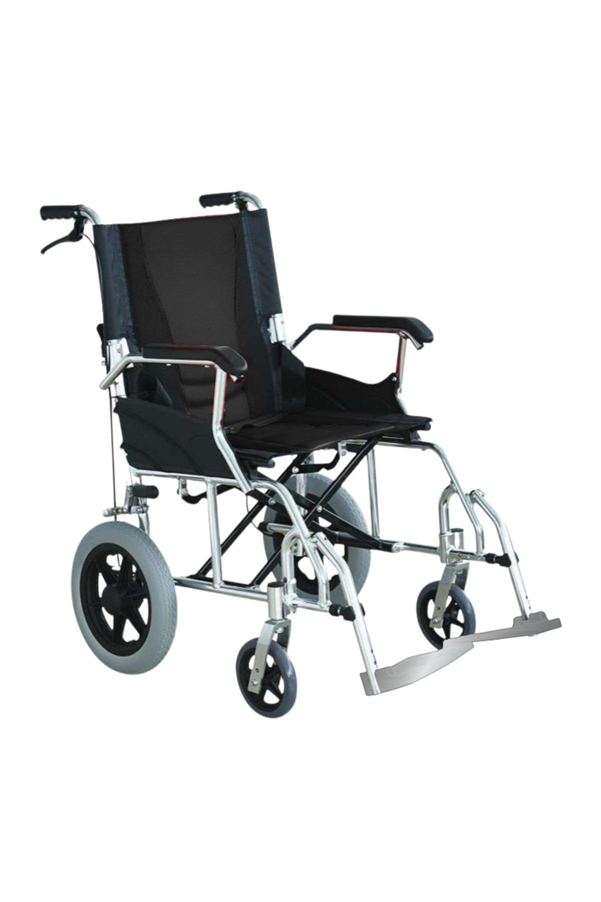 Respirox 11 KG Alüminyum Hasta Nakil Aracı Siyah Çerçeve: Alüminyum alaşım Yüzey: Parlak gümüş oksidasyon El tutamakları: PVC sabit tırabzan Yastık: Naylon Arka Ped: Naylon Ayak: Plastik Fren: Arka el freni Ön tekerlek: 6?, PVC lastik Arka tekerlek: 12?, PVC lastik