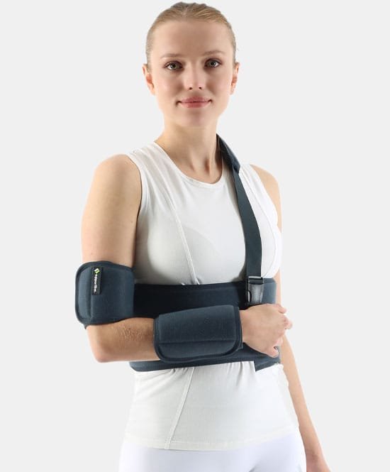 Süngerli kumaştan üretilmiş olup kol ve omuz anatomisine uygun olarak tasarlanmıştır. Omuz ve üst kolu sabitlemek amacı ile kullanılır. Fonksiyonel tasarımı ile gerektiğinde ön cırtlar açılarak tedavi ve kontrol kolaylığı sağlar.